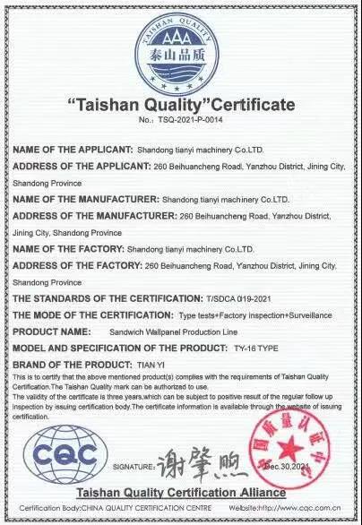 近日,山東天意機(jī)械股份有限公司榮獲“泰山品質(zhì)”認(rèn)證證書(shū),這是濟(jì)寧市企業(yè)繼山東如意毛紡服裝集團(tuán)股份有限公司、通亞汽車(chē)制造有限公司之后,再次獲得“泰山品質(zhì)”認(rèn)證證書(shū)。