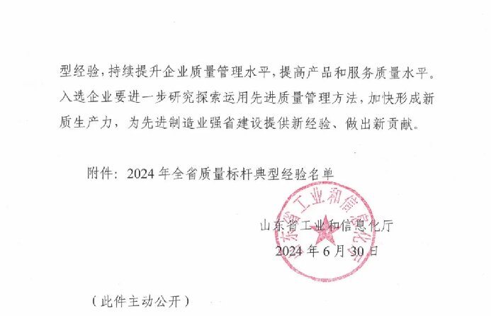 全省質(zhì)量標(biāo)桿是由山東省工信廳主導(dǎo),山東省質(zhì)量協(xié)會(huì)組織評選的省級榮譽(yù),旨在強(qiáng)化提升企業(yè)質(zhì)量管理水平,推動(dòng)培育和建設(shè)產(chǎn)品卓越、品牌卓越、創(chuàng)新領(lǐng)先、治理現(xiàn)代、具有核心競爭力的一流企業(yè),代表各行業(yè)、各領(lǐng)域的優(yōu)秀質(zhì)量示范。2024年主要聚焦質(zhì)量管理體系升級、關(guān)鍵過程質(zhì)量控制、產(chǎn)業(yè)鏈供應(yīng)鏈韌性與安全和質(zhì)量管理數(shù)字化進(jìn)行遴選。