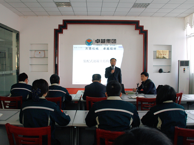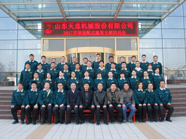 2017年2月11日,在元宵佳節(jié)這個特殊的節(jié)日里,山東天意機械股份有限公司舉辦“2017年首屆裝配式建筑專題培訓會”。會議在天意機械技術研發(fā)中心一樓多媒體電教室成功舉行。出席本次會議的有山東天意機械股份有限公司董事長劉洪彬、副總經(jīng)理劉其華、生產(chǎn)總監(jiān)秦憲軍、戰(zhàn)略項目部部長孫為民、銷售總監(jiān)郭川東以及生產(chǎn)、銷售、售后服務團隊100余人參加會議。本次會議也邀請了在裝配式建筑設計、建設領域有豐富實踐經(jīng)驗的項目負責人和行業(yè)專家參見本次會議。