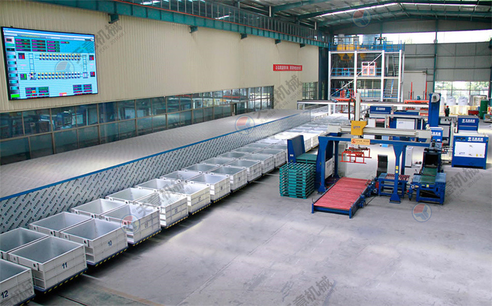 水泥發(fā)泡保溫板生產(chǎn)線是我公司順應(yīng)市場需求新研發(fā)的成套設(shè)備。該生產(chǎn)線將工藝流程劃分為攪拌系統(tǒng)、循環(huán)澆注系統(tǒng)、脫模系統(tǒng)、切割系統(tǒng)、包裝系統(tǒng)、儲存系統(tǒng)、廢料破碎回收系統(tǒng),全套生產(chǎn)線可實現(xiàn)班產(chǎn)量400—600m3,全部利用自動控制生產(chǎn)流程,所需人工9—12人,大大降低生產(chǎn)成本.